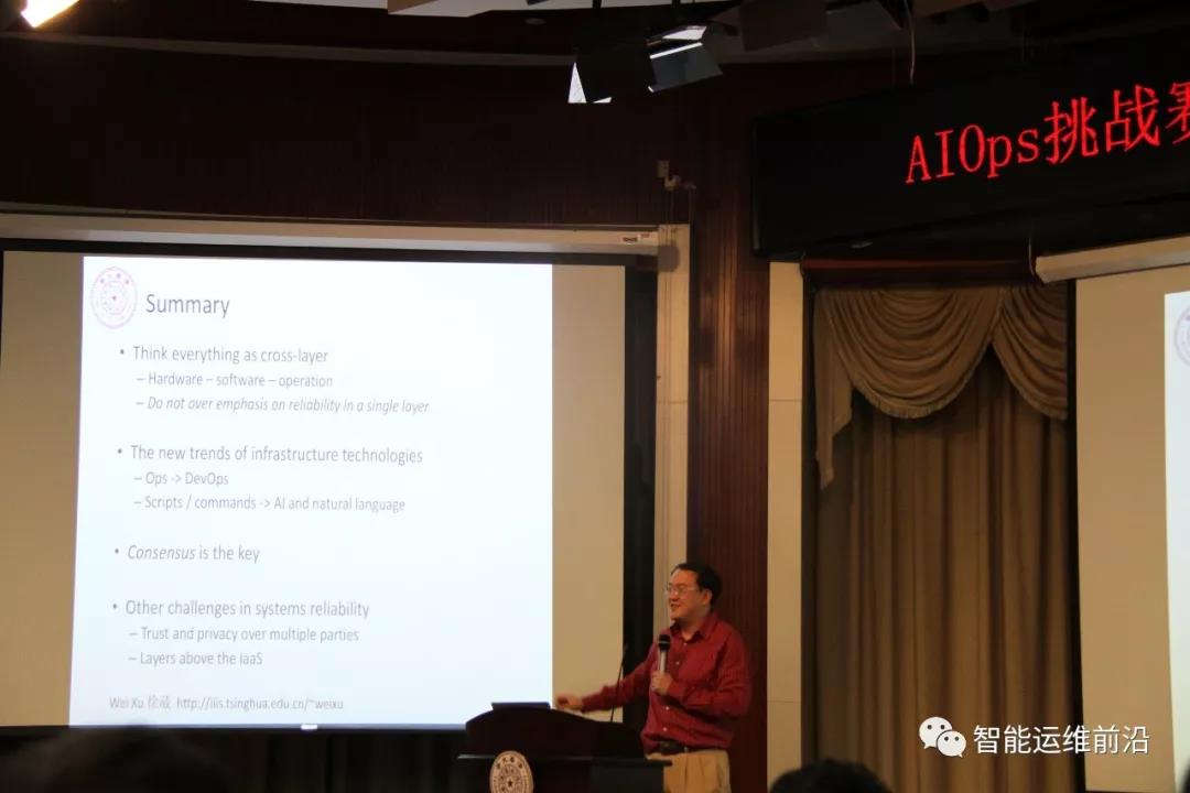 然后,清华大学副教授裴丹博士进行了承办方致辞,详细地介绍了AIOps挑战赛的情况,向AIOps挑战赛决赛暨首届AIOps研讨会的主办方计算机学会、协办方计算机学会互联网专业委员会、承办方清华大学计算机系和yl6809永利、数据提供方(EBay、搜狗、百度、腾讯游戏、阿里巴巴)、网站建设方(腾讯游戏)、资金提供方(华为)、决赛环境提供方(Microsoft Azure)分别表示了感谢。